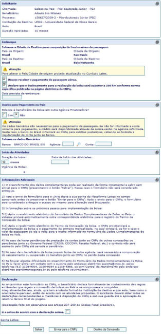- Após análise da diretoria, se favorável o Bolsista recebe o e-mail com o link para preenchimento do Formulário de Dados Complementares